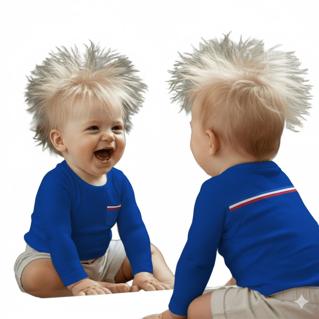 WNX263-2Блузката е в наситеносин цвят, с малко джобче отляво и декоративен раиран кант в бяло, червено и синьо върху него, по гърба и по протежение на ръкавите .Марка: NextСъстав: 100% памук
