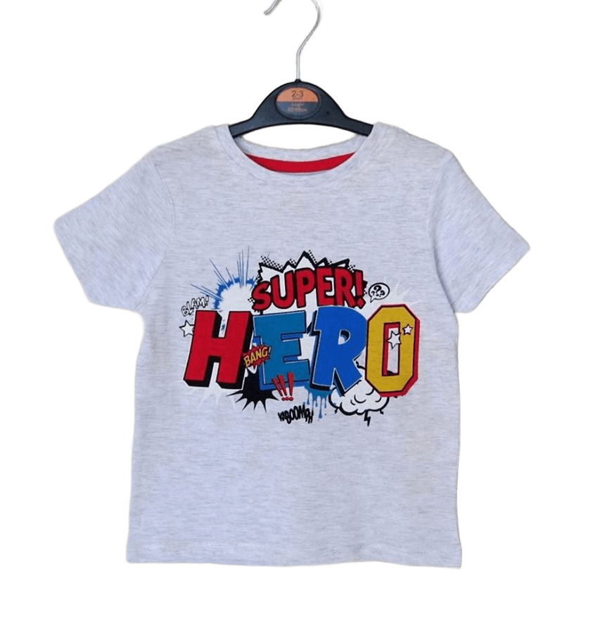Светлосива тениска с цветна щампа SUPER HERO