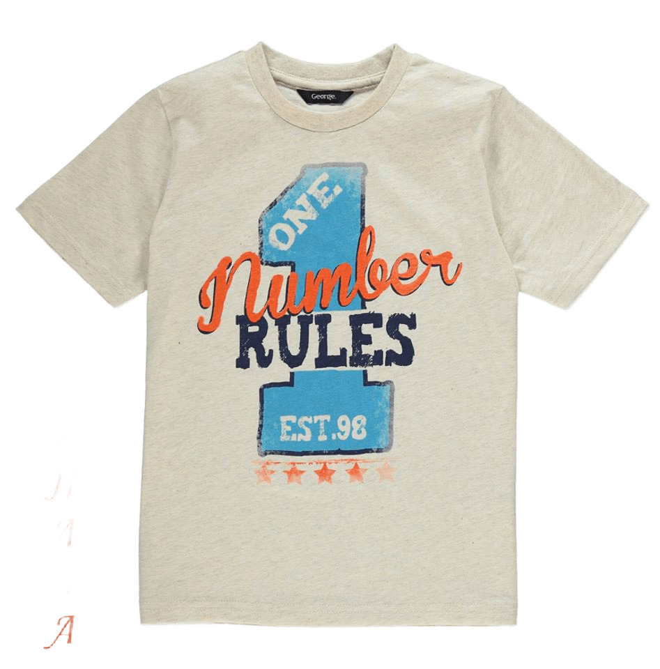 WGM2845Тениската е в бледо бежово, със синя цифра 1 и надпис "NUMBER 1 RULES" в оранжево и тъмносиньо.Марка: GeorgeСъстав: 100% памук