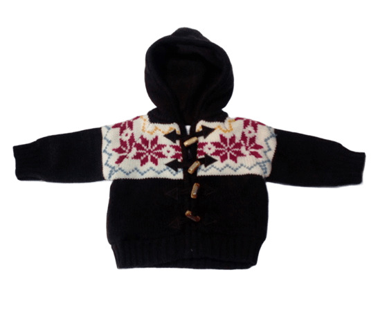 Тъмнокафява жилетка с качулка и подплата. По цялата предница, гърба и ръкавите има широка бяла ивица с червени звезди и зигзагообразна шарка в жълто и синьо. Закопчава се с цип и четири декоративни овални копчета. Тялото и качулката са с подплата от кафяв полар, а ръкавите са подплатени с хастар.