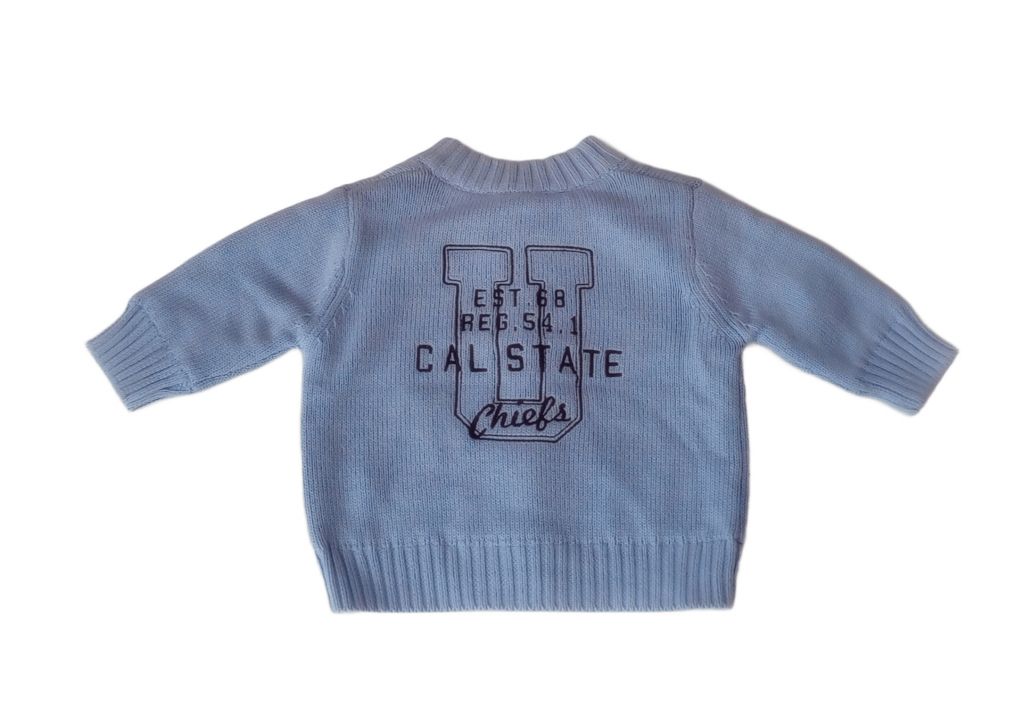 G1762Жилетката е плетена, в светлосин цвят, с цип. Има апликирана цифра 2 от лявата страна и бродирани надписи на гърба. Подплатата е от трикотажен плат.Марка: GeorgeСъстав: 100% памук
