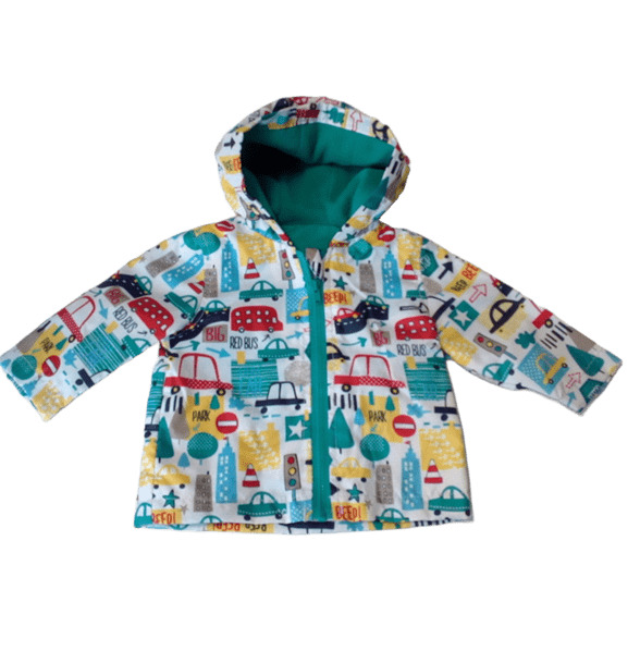 Якенцето е с лека подплата и качулка, с разноцветни изображения на различни превозни средства и пътни знаци. Закопчава се с цип, има две малки джобчета.