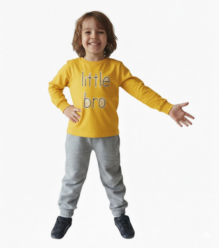 Блузата е с дълъг ръкав, в цвят горчица с черно-бял надпис "Little bro".Марка: TUСъстав: 100% памук