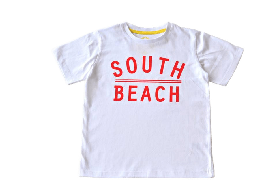 GTF2040-1Тениската е от бяло трико, с голям червен надпис "SOUTH BEACH" отпред.Марка: MatalanСъстав: 100% памук