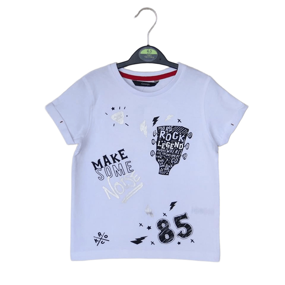 DGE418-2Бяла тениска с черни надписи ROCK LEGEND, номер 85 и гриф от китара.Марка: GeorgeСъстав: 100% памук