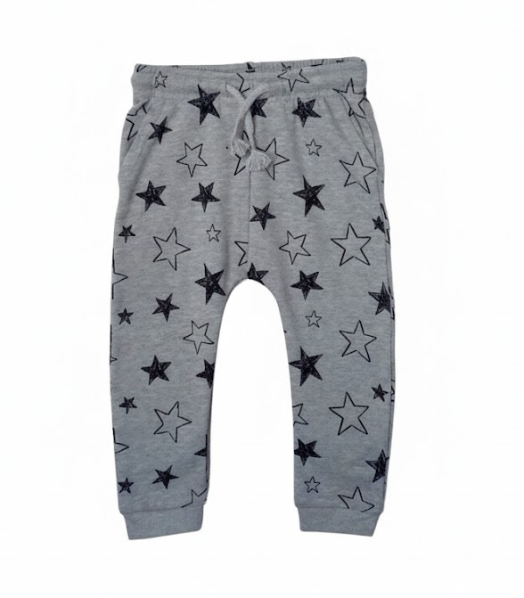 GEG0014Долнището е леко ватирано, в светлосив цвят с черни звездички. Има два джоба и шнур за регулиране в талията.Марка: GeorgeСъстав: 76% памук, 21% полиестер, 3% вискоза