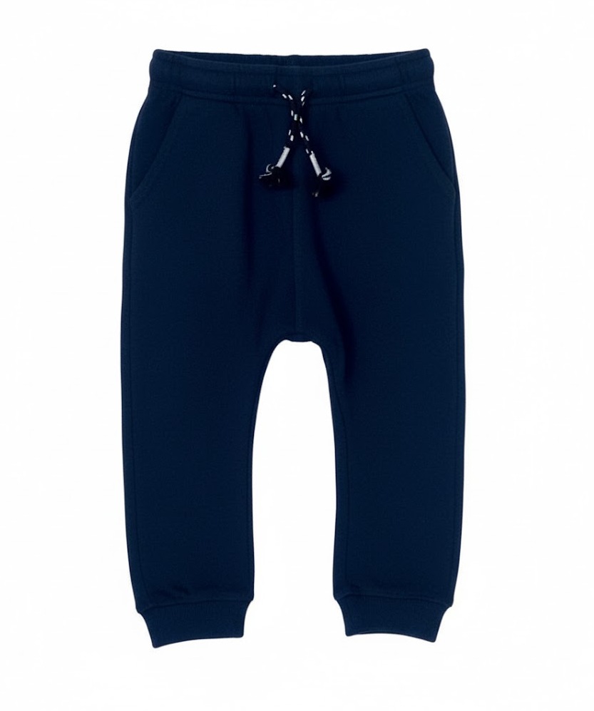 DGE5031-1Долнището е леко ватирано, в тъмносин цвят, с функционален шнур към ластика на талията, декориран с бяло и два предни джоба.Марка: GeorgeСъстав: 80% памук, 20% полиестер