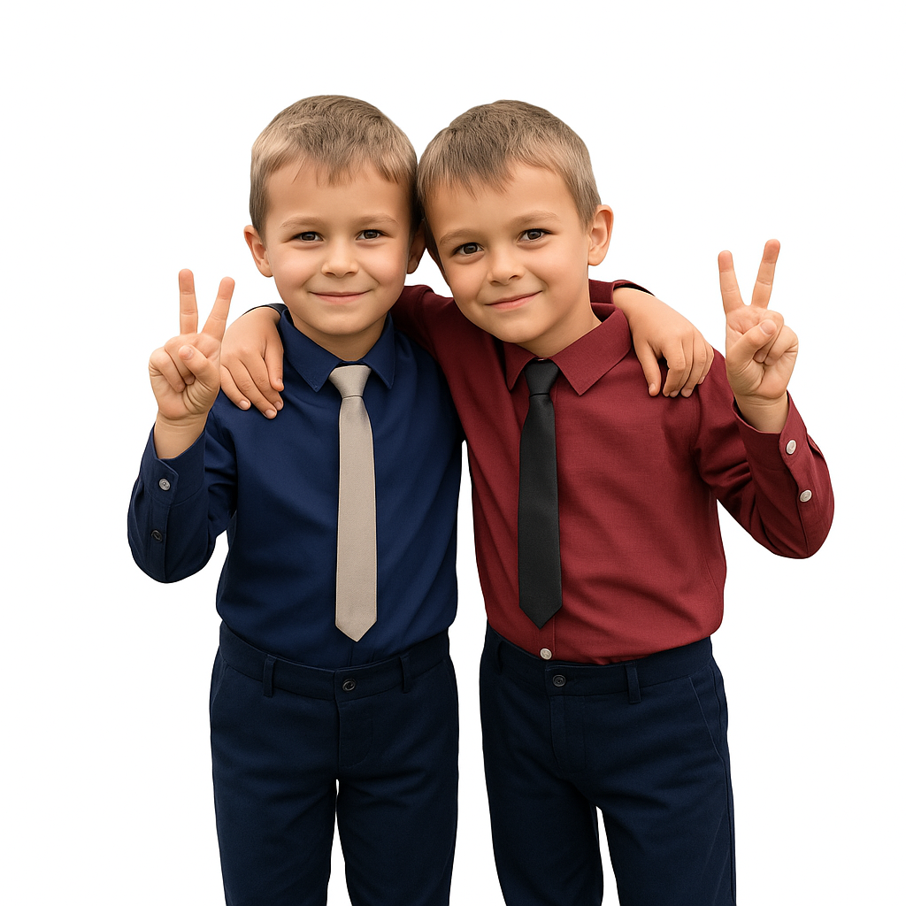 Комплектът се състои от тъмночервена риза с дълъг ръкав в цвят бордо и вратовръзка в черно.