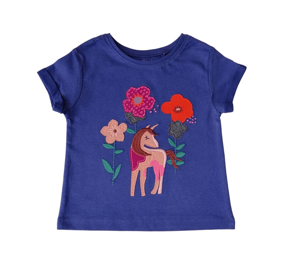 GNX1266Тениската е в цвят индиго, с големи цветя и еднорог отпред, съчетание на бродерия и апликация.Марка: NextСъстав: 100% памук