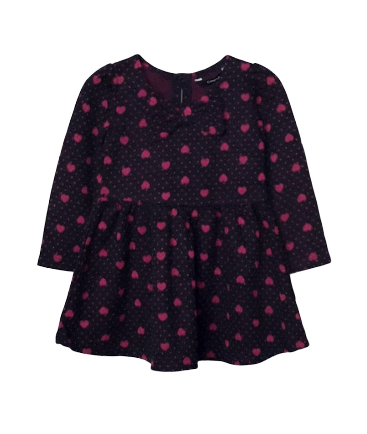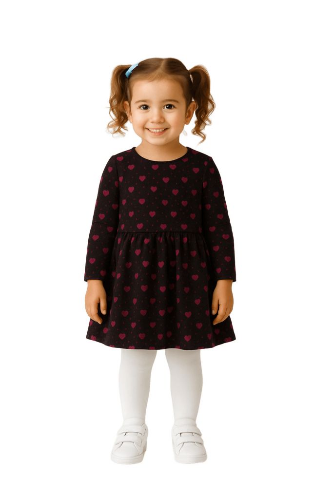 Рокличката е от фино плетиво в черен цвят, с тъмнорозови сърчица и дребни точки. Поличката е с набор, а на деколтето отпред има голяма декоративна панделка. Закопчава се с копченце на гърба.