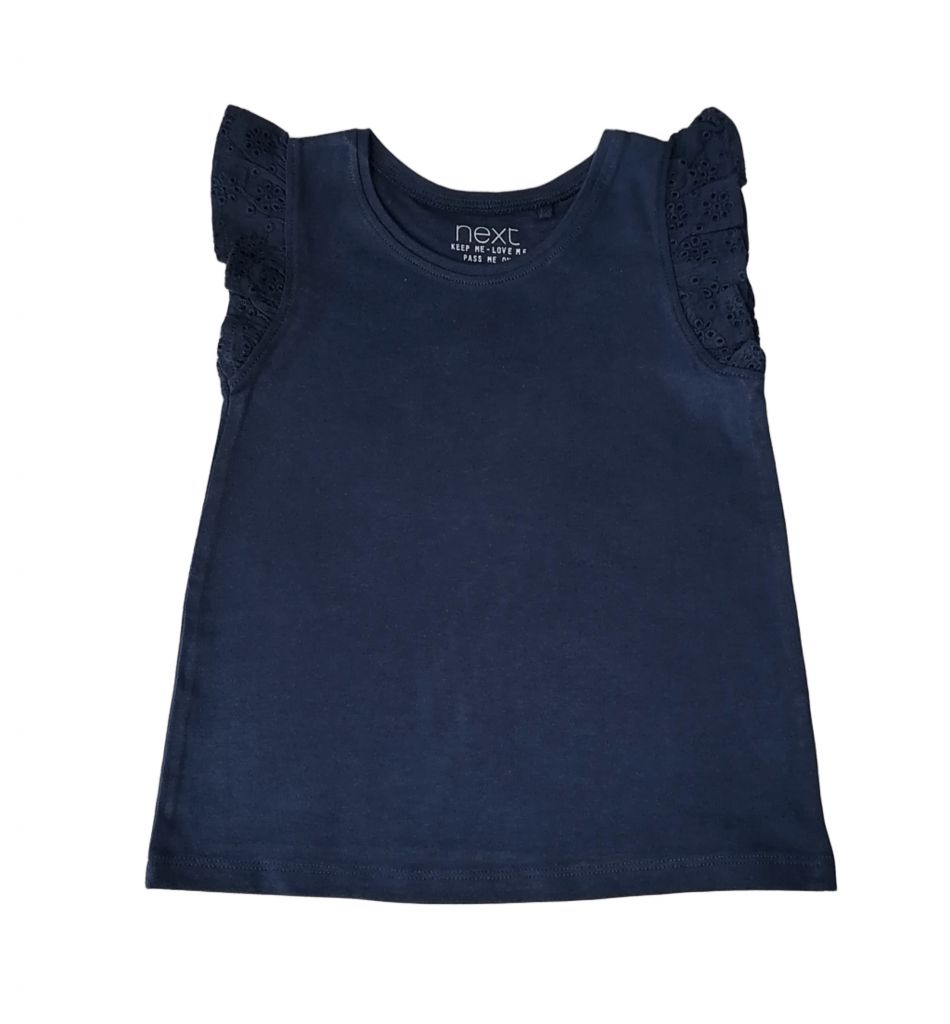 GNX1262-2Блузката е без ръкав, в тъмносин цвят. В областта на раменете има нежен набор от рязана памучна дантела.Марка: NextСъстав: 100% памук