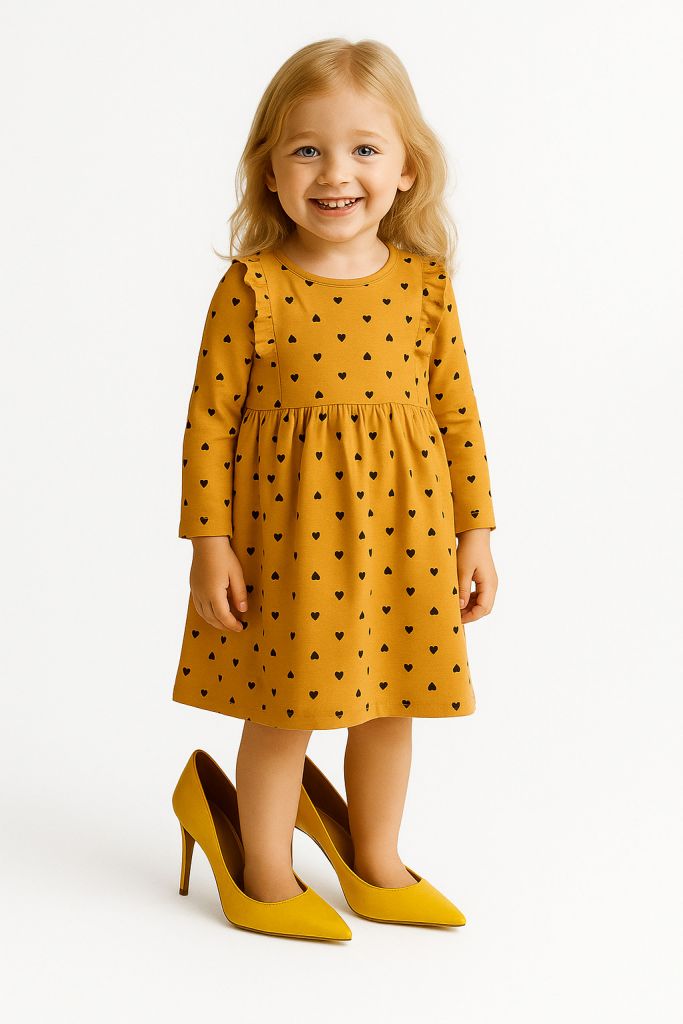 Рокля в цвят горчица със сърчица GMAT1161