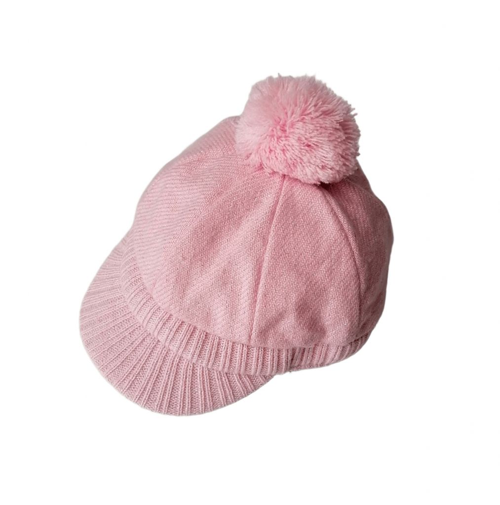 WHMF1815Баретата е изработена от розов плат с фини блестящи точици. Има твърда козирка и помпон отгоре. Задната част е с ластик.Марка: H&MСъстав: външна част - 59% полиестер, 40% акрил, 1% ламе; подплата - 100% памук